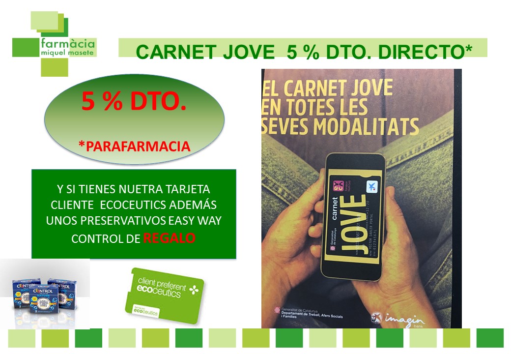 Si tienes el carnet joven aprovéchate de un 5 % dto en parafarmacia
